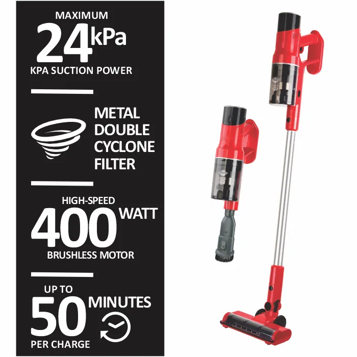 Genesis has a powerful 400W vacuum motor for the most incredible suction power – up to 26kPa* which is more than most corded vacuums!