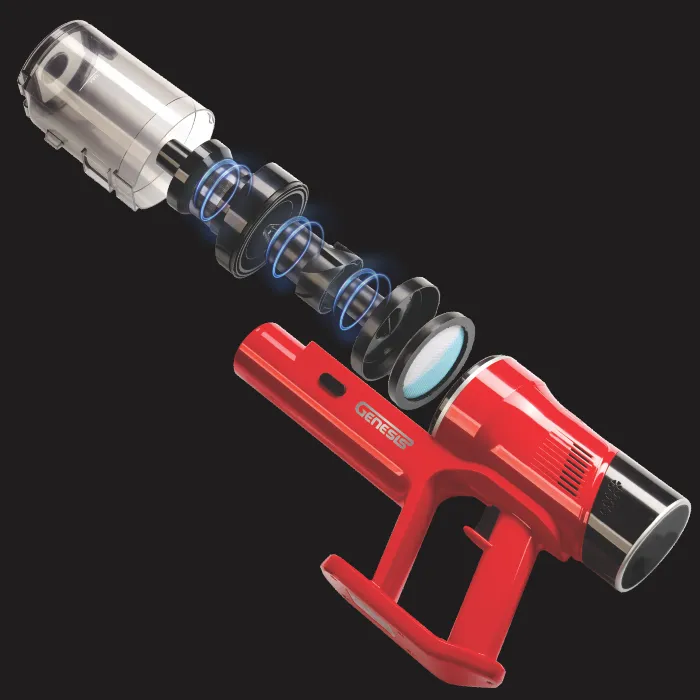 No great vacuum is complete without a great filtration system. Genesis features a metal grid, multi-cyclone filter which is easy to clean and to give you the best performance.